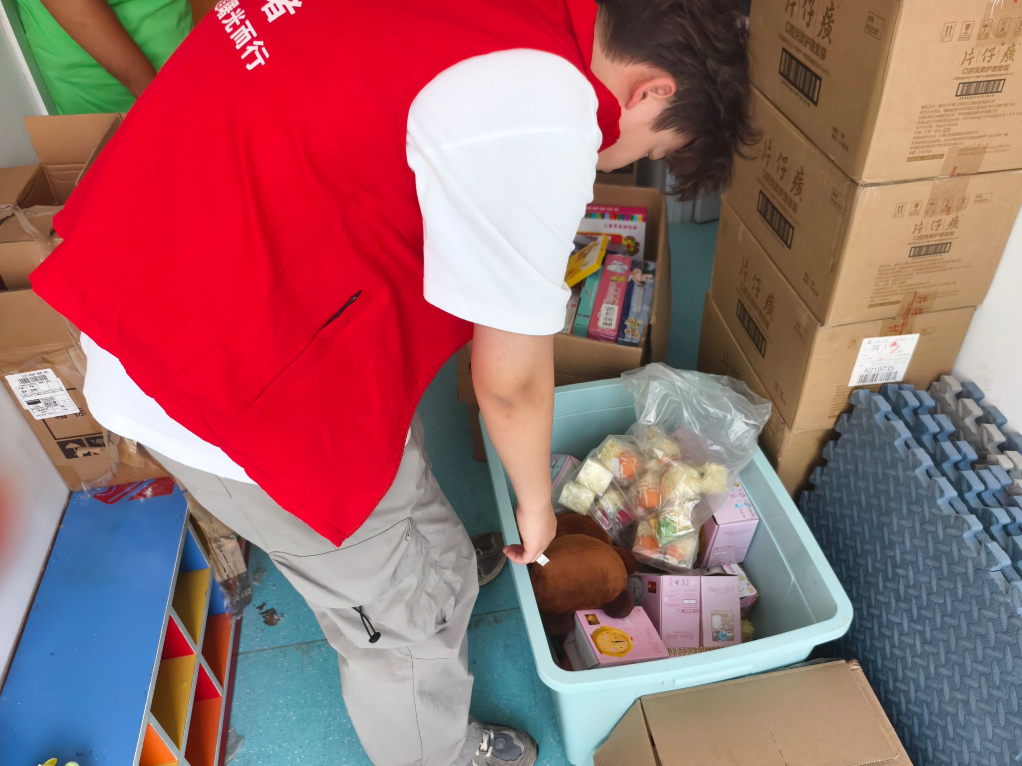在室內裝修如火如荼進行的同時,另一組志愿者們開啟了雜物整理的“空間魔法”。他們細致地穿梭于各個房間,將雜物分類為可回收物、不可回收物和有害垃圾。舊衣物、飲料瓶等可回收物品,在志愿者們的協調下找到了新的歸宿;不可回收垃圾也被妥善裝袋,等待專業處理。志愿者們還充分利用收納盒、置物架等工具,為康復中心規劃出合理的儲物空間。原本堆滿雜物的角落,在他們的巧手下變得干凈整潔、井然有序,空間也因此顯得更加寬敞明亮,仿佛一場關于生活的蛻變,讓整潔與美好重新回歸。