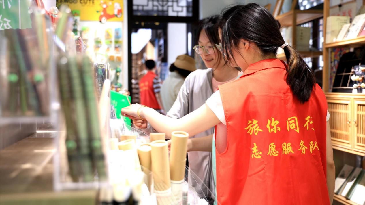 當(dāng)天,在百花洲景區(qū)設(shè)立的志愿服務(wù)點(diǎn),志愿者身著標(biāo)有“旅你同行”logo的志愿者馬甲,手持“綠色旅行,從我做起”“有困難找志愿者”等標(biāo)識(shí)牌。他們面帶微笑,耐心細(xì)致地為游客提供咨詢服務(wù)。同時(shí),志愿者幫助游客規(guī)劃游玩路線,在參觀過程中為游客引路講解,其中不乏濟(jì)南的特色美食,如把子肉冰淇淋、老酸奶等,讓游客在游玩中吃好、聽好、玩好。