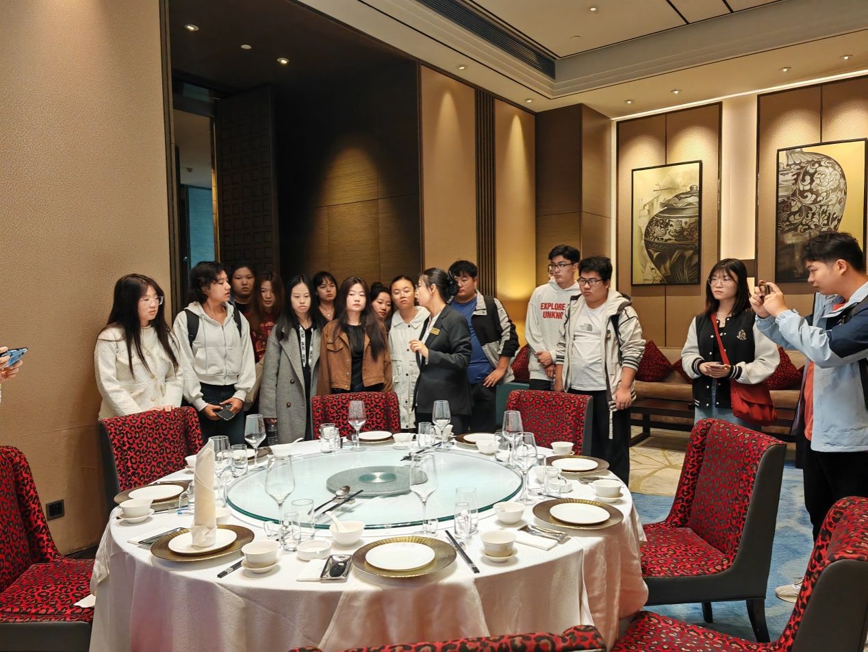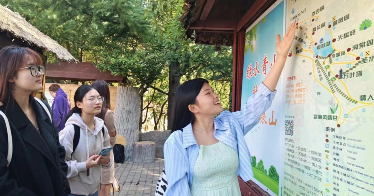 在紅葉谷生態文化旅游區,學生調研了景區旅游資源的分布、功能分區與線路設計;在山東博物館,學生現場觀摩了專業導游講解技能,領略了山東的歷史文化和地域特色;在芙蓉街-百花洲歷史文化街區,學生考察了芙蓉街、王府池子、曲水亭街及百花洲等景點,對文化傳承與保護、業態布局及社區旅游發展進行了全面了解;在濟南綠地美利亞酒店和魯能希爾頓酒店,學生通過實地參觀、交流座談與現場模擬等途徑,學習了酒店的企業文化、服務設施配置、各崗位的工作內容及服務要點等。