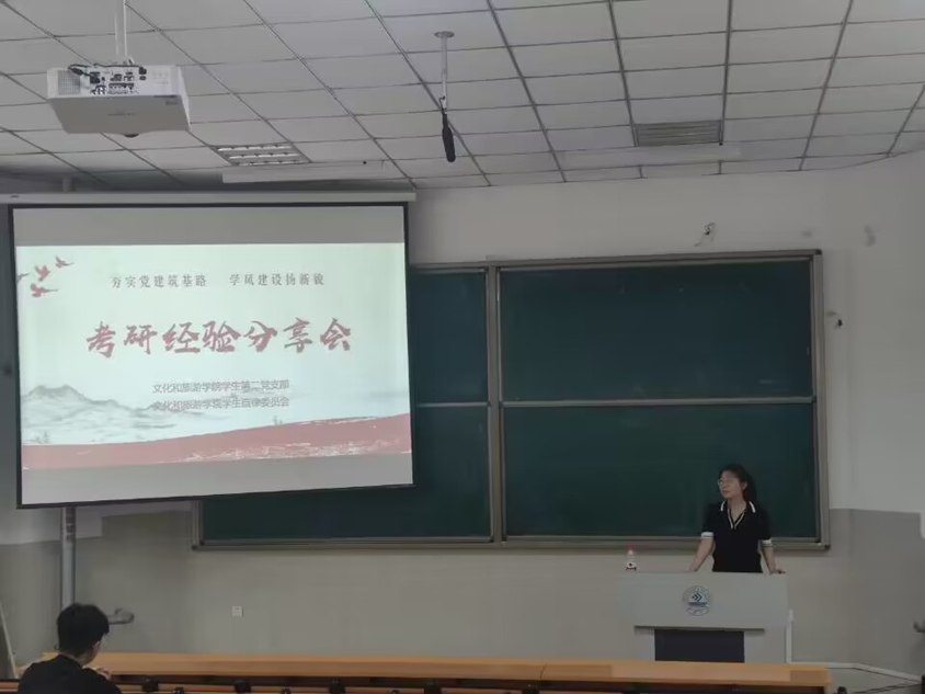 “研”途領航,黨員先行,為深入開展學習貫徹習近平新時代中國特色社會主義思想主題教育,幫助學生解決考研過程中急難問題與明晰考研形勢、掌握科學備考方法,自2023年5月16日起,文化和旅游學院學生第二黨支部舉辦了為期三周的考研、考公經驗分享會。